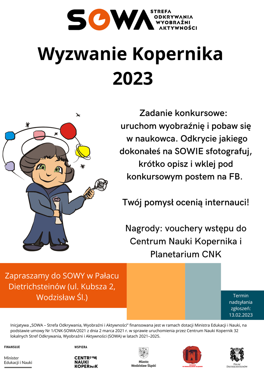 Już niebawem wielki polski uczony Mikołaj Kopernik będzie obchodził 540. rocznicę urodzin. Z tej okazji Muzeum w Wodzisławiu Śląskim zaprasza do udziału w konkursie pt. „Wyzwanie Kopernika 2023”.