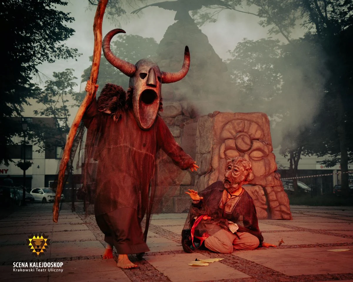 - godz. 19:00 – spektakl pt. „Kamienny” w wykonaniu teatru ulicznego z Krakowa „Scena Kalejdoskop”,
