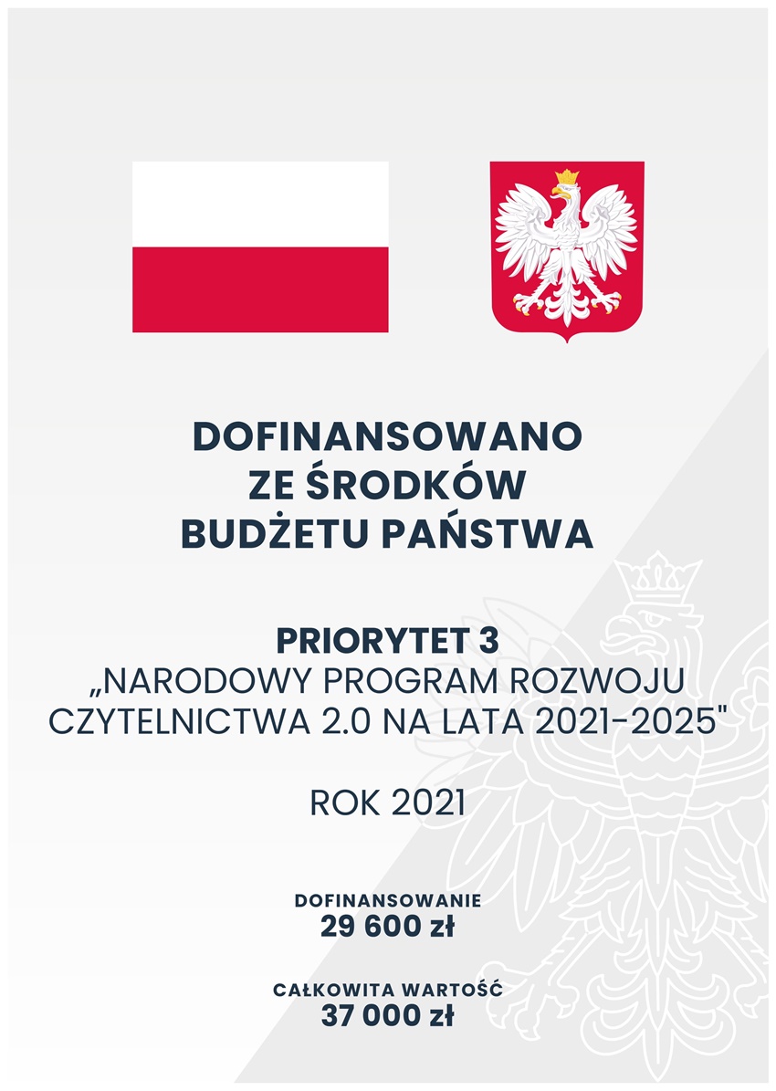 Kolejne dofinansowanie dla miasta w ramach “Narodowego Programu Rozwoju Czytelnictwa 2.0 na lata 2021-2025”.