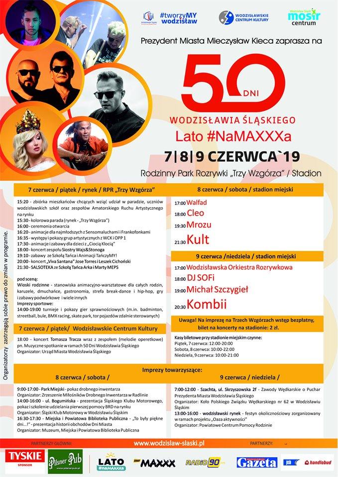 Miasto Wodzisław Śląski organizuje 50. Dni Wodzisławia Śląskiego poprzez Wodzisławskie Centrum Kultury oraz Miejski Ośrodek Sportu i Rekreacji “CENTRUM”.