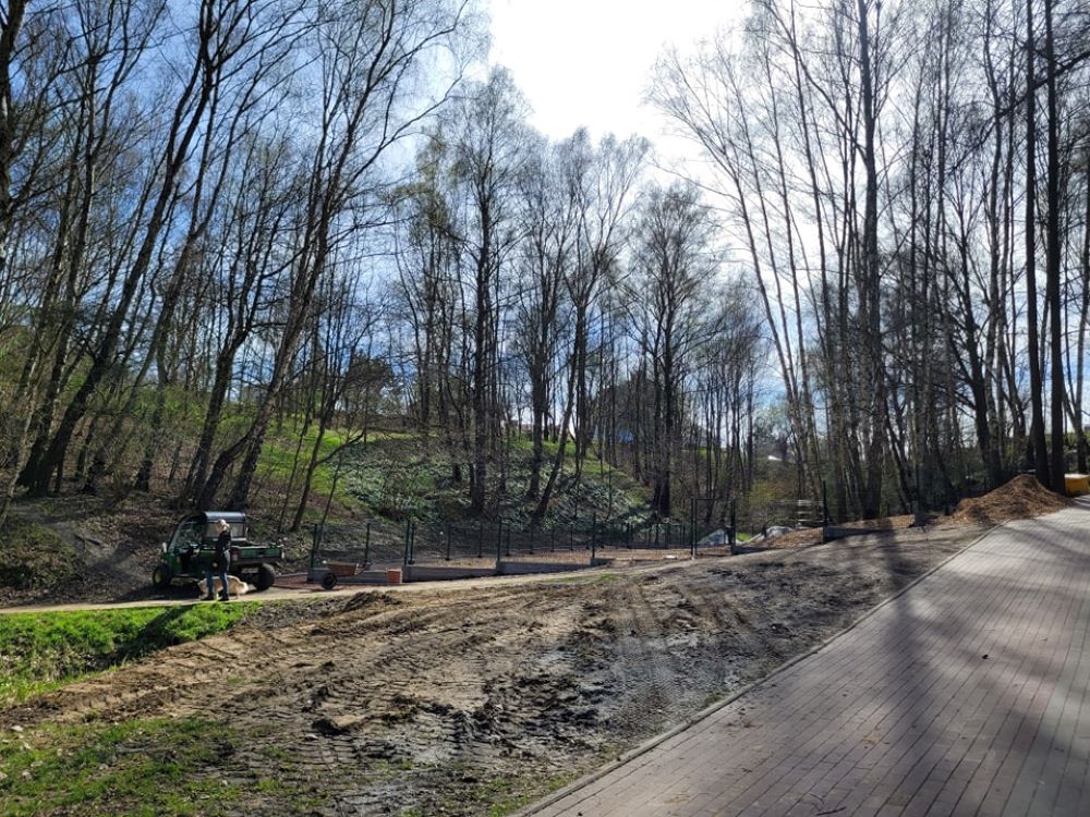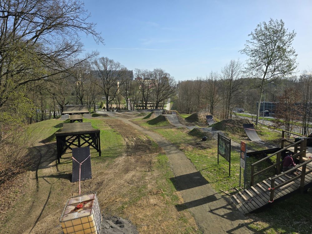 Prace trwają również na torze rowerowym typu “slopstyle”. Czym jest slopestyle? To widowiskowa dyscyplina, która w dużej mierze inspirowana jest jazdą dirt i BMX. Polega m.in. na wykonywaniu figuracji na wybojach, drewnianych modułach lub elementach miejskich w zależności od terenu, po którym jeździ zawodnik.