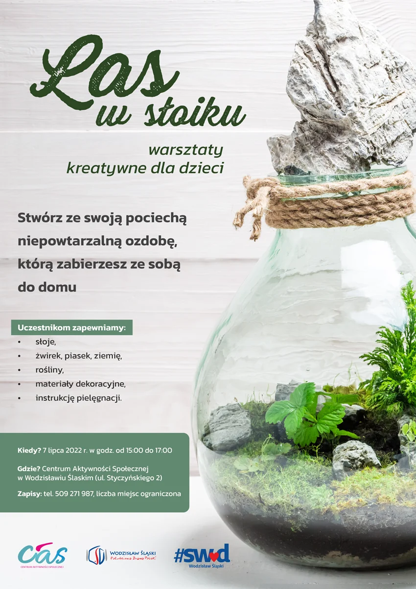 Te warsztaty przygotowane zostały specjalnie z myślą o najmłodszych. W czwartek, 7 lipca odwiedź wodzisławskie Centrum Aktywności Społecznej i stwórz ze swoją pociechą niepowtarzalny las wsłoiku.