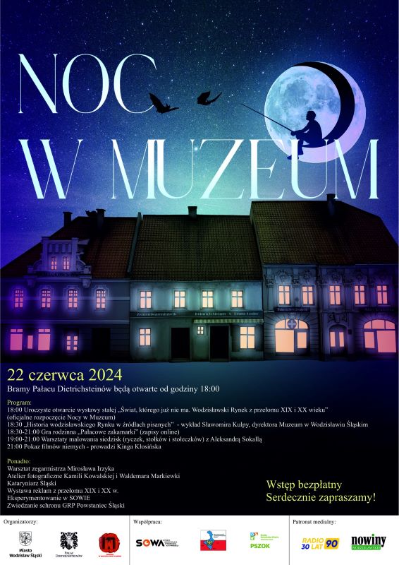 Noc w Muzeum rozpoczyna się 22 czerwca o godzinie 18:00. Patronat medialny nad wydarzeniem sprawuje Radio 90 i Nowiny Wodzisławskie. Wstęp na wydarzenie jest bezpłatny. Zapraszamy.