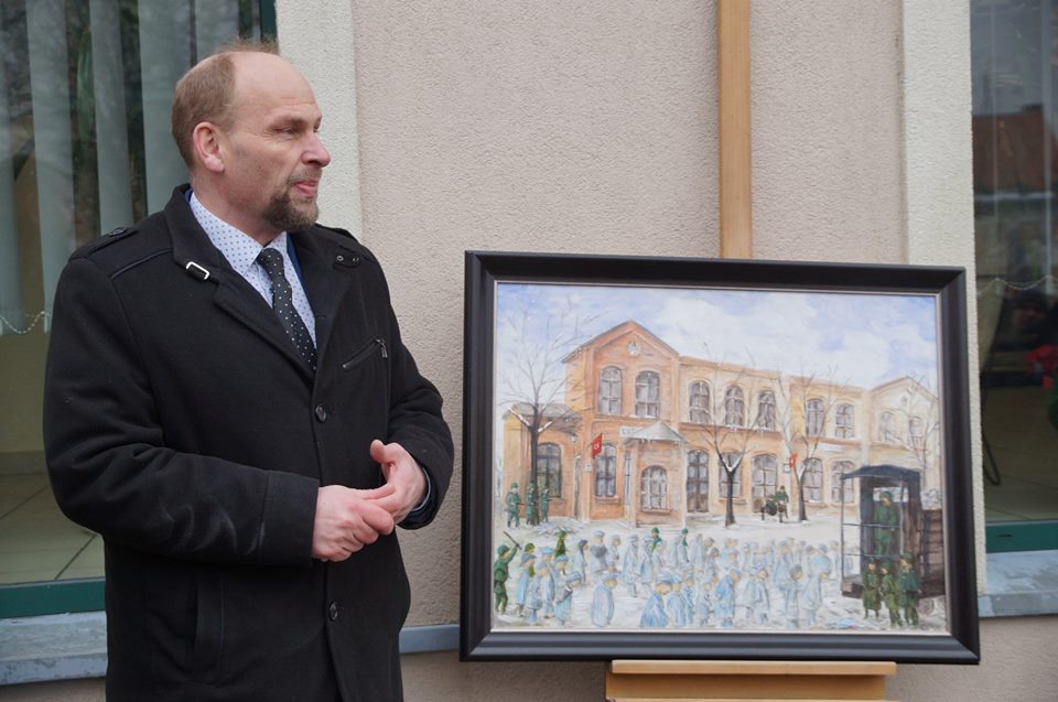 - Następnie maszerujący dotarli do Rynku, gdzie Piotr Solis przekazał na ręce dyrektora Muzeum Sławomira Kulpy obraz nawiązujący do Marszu Śmierci.