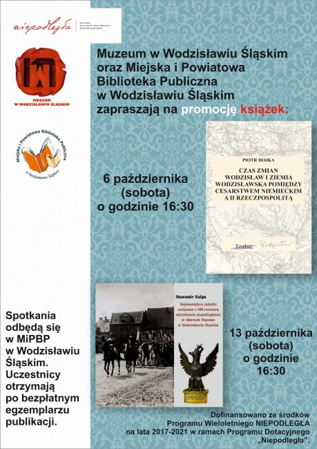 W sobotę 13 października o godzinie 16:30 w Miejskiej i Powiatowej Bibliotece Publicznej w Wodzisławiu Śląskim, odbędzie się promocja albumu autorstwa Sławomira Kulpy „Najcenniejsze zabytki związane z 100. Rocznicą Odzyskania Niepodległości w zbiorach Muzeum w Wodzisławiu Śląskim ” .