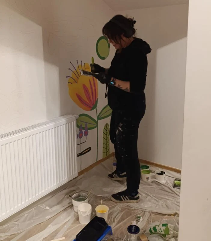 Kącik dla najmłodszych będzie bogaty w kolory i piękne obrazy, dzięki powstającemu tam muralowi, który przedstawiać będzie m.in. kwiaty, motyle oraz mamuta – tworząc wyjątkową, przyjazną i inspirującą atmosferę. Już niebawem poznamy efekty pracy artystki.