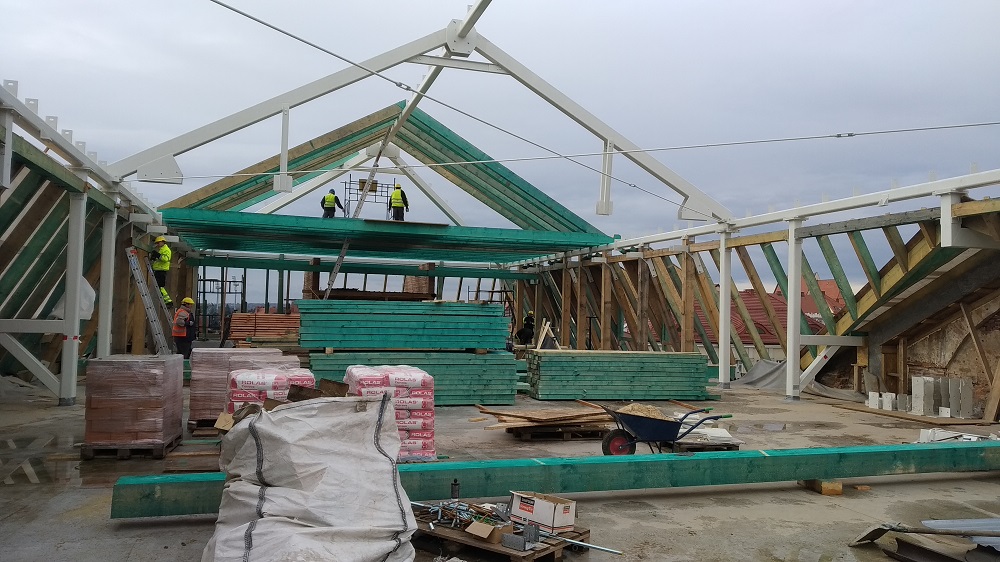 Do tej pory wykonano już między innymi takie prace: rozbiórka pozostałych podłóg na parterze budynku, iniekcje ścian budynku, skuwanie wtórnych tynków z elewacji i detali architektonicznych, skuwanie głuchych tynków, demontaż więźby dachowej, zabezpieczenie obiektu przed warunkami atmosferycznymi, wykonanie robót konstrukcyjnych związanych z przebiciami otworów, drzwiowych, budową windy i klatek schodowych.