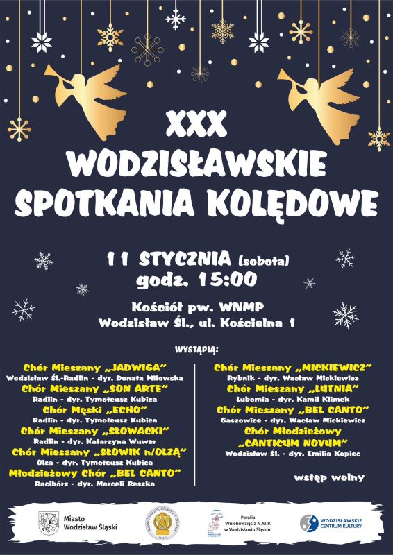 - godz. 15:00 – XXX Wodzisławskie Spotkania Kolędowe – wystąpią m.in. Chór Mieszany „Jadwiga”, Chór Mieszany „Mickiewicz”, Chór Męski „Echo”, wstęp wolny kościół pw. WNMP w Wodzisławiu Śląskim