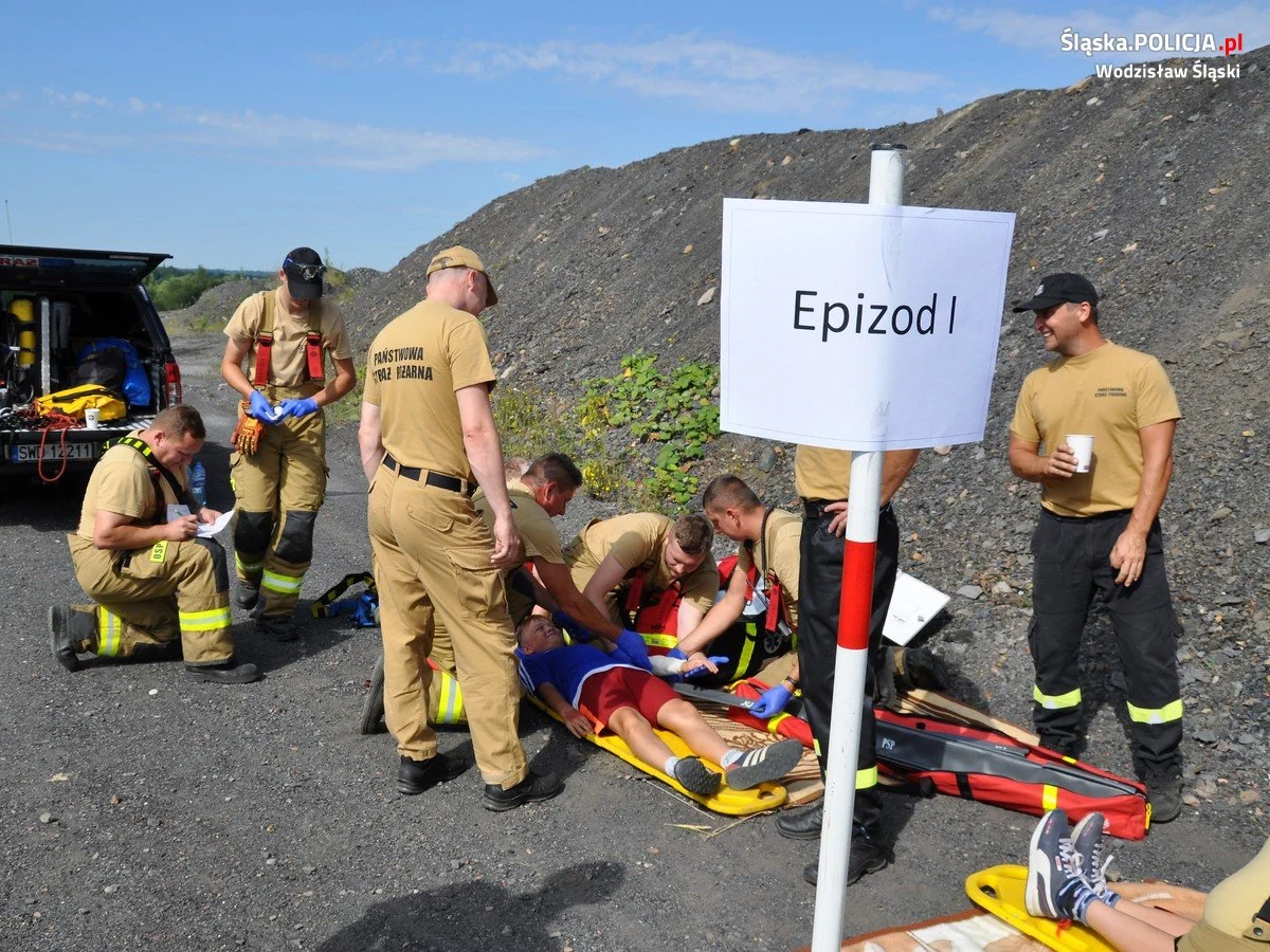 Policjanci wodzisławskiego garnizonu wzięli udział w ćwiczeniach zgrywających dowódczo – sztabowych zorganizowanych przez Komendę Powiatową Państwowej Straży Pożarnej w Wodzisławiu Śląskim. Ćwiczenia odbyły się 31 lipca br. na terenie „Polderu Buków”. Drużyny składające się ze strażaków Ochotniczych Staży Pożarnych miały do realizacji czynności na miejscu zdarzenia w 5 różnych miejscach i według określonych scenariuszy. Policjanci weszli w skład jednej z drużyn i współpracując ze strażakami – ochotnikami realizowali założenia poszczególnych stanowisk.
