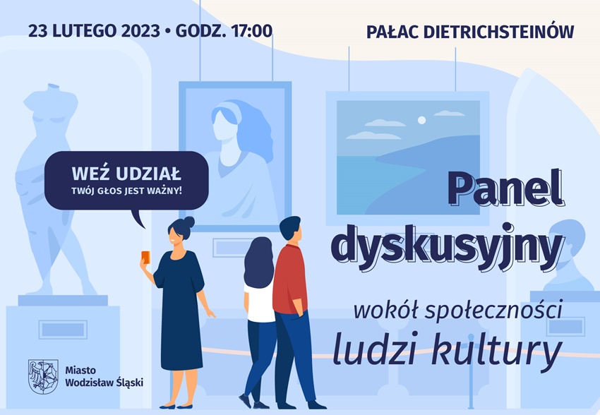 Na pierwsze spotkanie zapraszamy artystów i osoby zawodowo związane z kulturą. Porozmawiamy na temat kondycji kultury lokalnej i perspektywach jej rozwoju. W Wodzisławiu Śląskim prężnie działają trzy jednostki kulturalne – Wodzisławskie Centrum Kultury, Biblioteka oraz Muzeum, które skupiają ludzi, działających w różnych dziedzinach artystycznych tj. taniec, sztuki plastyczne, teatr czy muzyka, a także historyków, bibliotekarzy, instrumentalistów i wielu innych. W mieście na co dzień żyje także wiele utalentowanych osób, które rozwijają swoje umiejętności poza granicami powiatu. Każda z nich może wziąć udział w panelu i zabrać głos. Wszelkie uwagi i propozycje będą mile widziane, ponieważ nie ma zadania, które nie byłoby dla nas istotne.