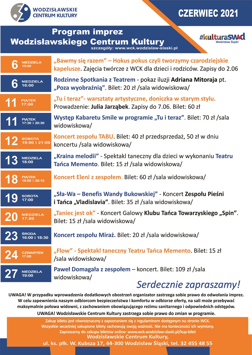 Program imprez Wodzisławskiego Centrum Kultury – czerwiec 2021