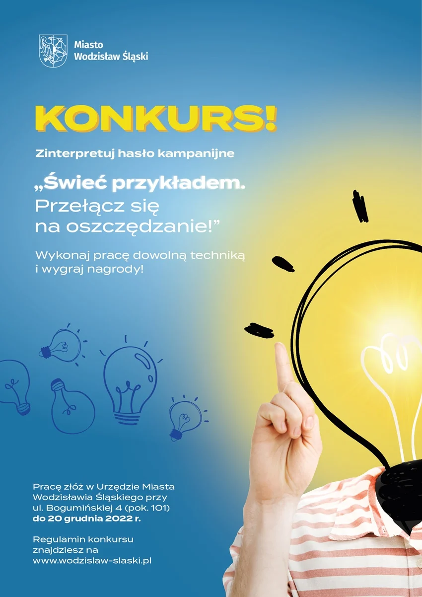 Rachunki za prąd są podstawowym wydatkiem każdego gospodarstwa domowego. Wiemy, że w związku z wysokimi cenami energii elektrycznej coraz więcej osób szuka oszczędności. W obecnej sytuacji trudno uniknąć drastycznych podwyżek, które zdecydowanie będą obciążeniem dla naszych portfeli. Konkurs na interpretację hasła kampanijnego „Świeć przykładem. Przełącz się na oszczędzanie” ma zwrócić uwagę wodzisławian, na to, że warto szukać oszczędności również samodzielnie.