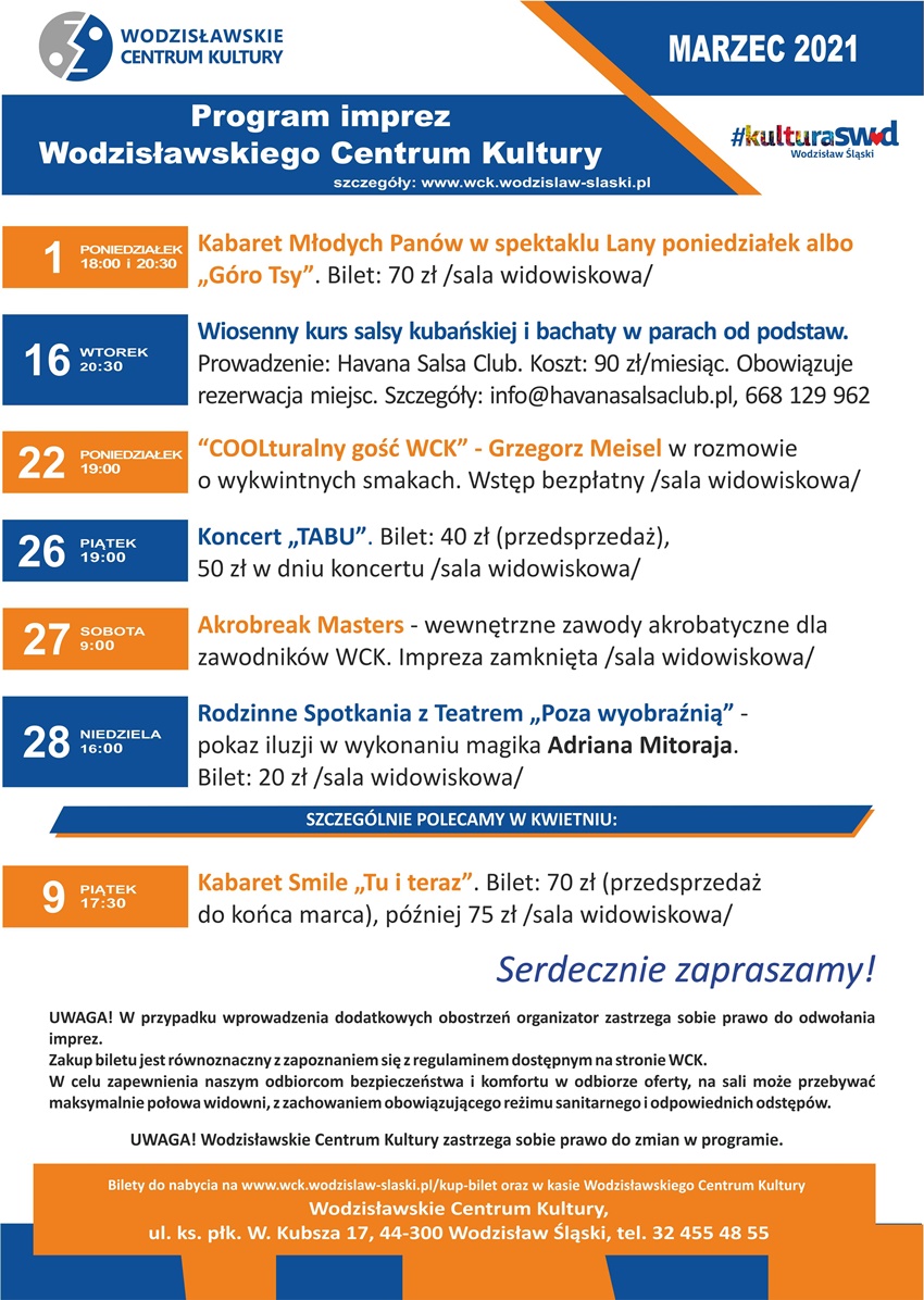 Repertuar Wodzisławskiego Centrum Kultury na marzec 2021