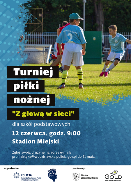 Komenda Powiatowa Policji w Wodzisławiu Śląskim wraz z miastem Wodzisławiem Śląskim zapraszają wodzisławskie szkoły podstawowe na Turniej Piłki Nożnej “Z głową w sieci”, który odbędzie się w środę, 12 czerwca br. na Stadionie Aleja przy ul. Bogumińskiej 8. To jednak nie jedyna dyscyplina, w której sprawdzić będą się mogli uczniowie.