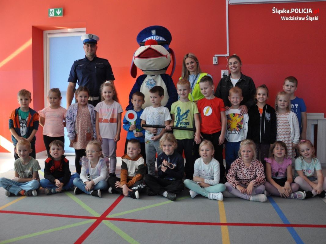 Policjant z wodzisławskiej drogówki przeprowadził spotkanie profilaktyczne z podopiecznymi przedszkola w Mszanie. Tematem spotkania było bezpieczeństwo najmłodszych. W spotkaniu wziął udział także Sznupek, maskotka śląskiej Policji.