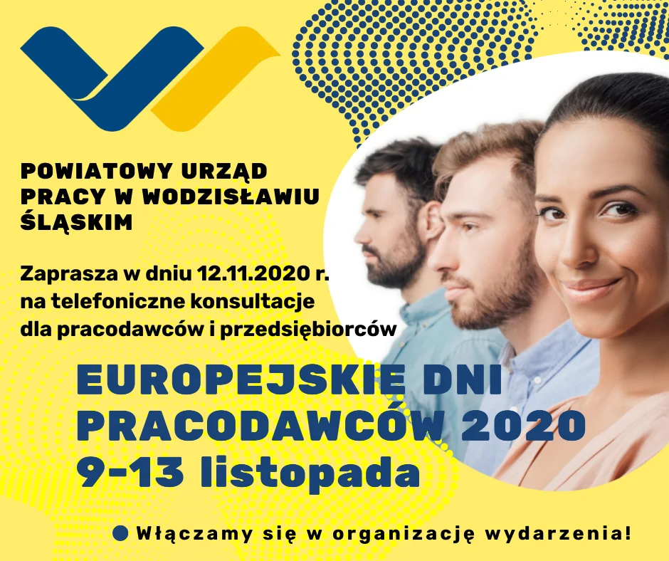 Powiatowy Urząd Pracy w Wodzisławiu Śląskim zaprasza do udziału w telefonicznych konsultacjach dla pracodawców i przedsiębiorców, które odbędą się 12 listopada br. w ramach Europejskich Dni Pracodawców 2020.