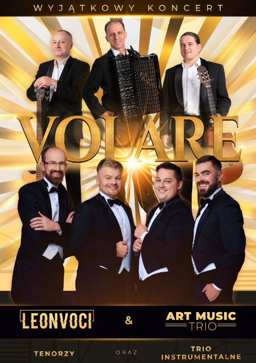 24 września na scenie Wodzisławskiego Centrum Kultury będzie miał miejsce wyjątkowy koncert czterech tenorów „LeonVoci” i artystycznego tria muzycznego „Art Music Trio”. Projekt muzyków zatytułowany „Volare” nawiązuje do najlepszych wykonań takich utworów jak: „Grande Amore”, „Brunetki, blondynki”, „Funiculi Funicula”, „Libertango”, „Marsz Turecki”, „Czardasz” i wielu innych światowych kompozycji.