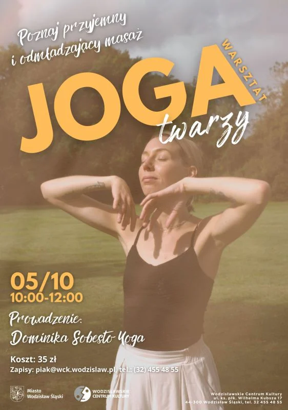W jesiennej ramówce warsztatów z cyklu „Tu i teraz” Wodzisławskie Centrum Kultury zaprasza na warsztaty jogi twarzy, które odbędą się 5 października o godz. 10:00.