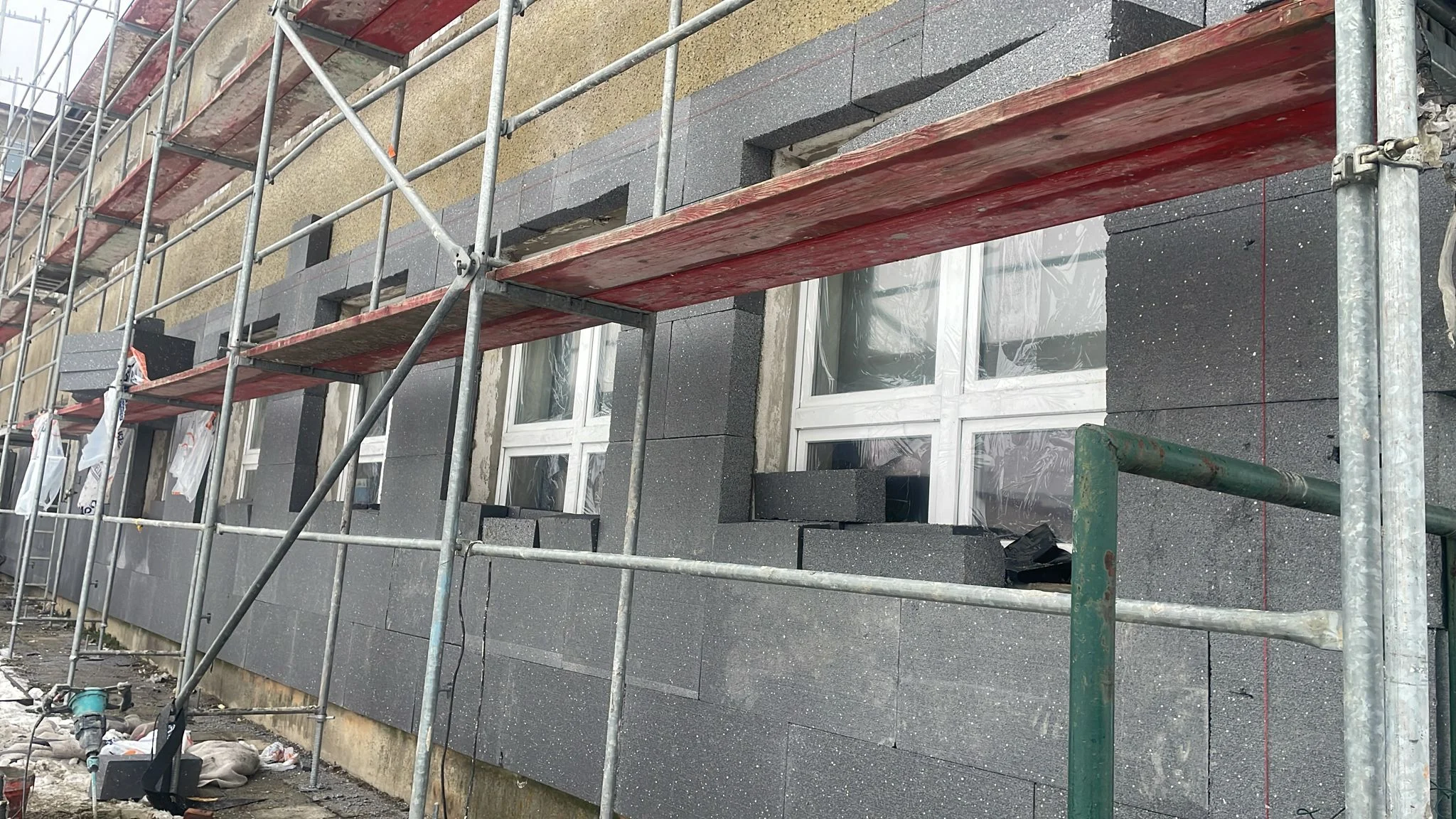 - Prace termomodernizacyjne, w tym częściowe docieplenie budynku oraz wymiana stolarki okiennej i drzwiowej,