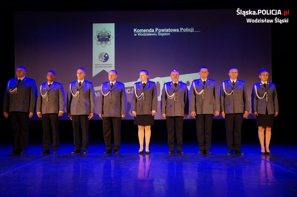 Tegoroczne obchody Święta Policji wzorem lat ubiegłych odbyły się w Wodzisławskim Centrum Kultury. O godzinie 12.00 swoim przemówieniem i przywitaniem gości, uroczystości rozpoczął Komendant Powiatowy Policji w Wodzisławiu Śląskim mł.insp. Jarosław Grudziński. Na uroczystości spośród wielu zaproszonych gości znaleźli się przedstawiciele Parlamentu oraz samorządowych władz powiatowych,miejskich i gminnych, a także komendanci służb mundurowych. Podczas akademii Komendant Wojewódzki Policji w Katowicach nadinsp. Krzysztof Justyński wraz z szefem wodzisławskiej jednostki wręczyli policjantom nominacje na wyższe stopnie policyjne oraz wręczyli listy gratulacyjne dwóm pracownikom cywilnym tej komendy. Mł.insp. Jarosław Grudziński złożył podziękowania podległym policjantom za codzienną służbę i zaangażowanie. Komendant Wojewódzki słowa uznania za wyrozumiałość i wsparcie skierował natomiast do rodzin policjnatów. Dziękując gościom za przybycie, Komendant Grudziński skierował również słowa podziękowania dla władz samorządowych oraz przedstawicieli służb mundurowych i instytucji lokalnych.