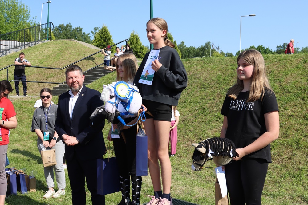 Tuż po tym sportowym wydarzeniu punktualnie o godz. 13:30 rozpoczął się Piknik Rodzinny z okazji Dnia Samorządu Terytorialnego. Impreza, podczas której wiele się działo dostarczyła wodzisławianom sporą dawkę dobrych emocji. Wydarzenie rozpoczęło się od pierwszych Wodzisławskich Zawodów Hobby Horse, w których udział wzięło niemal 100 dzieci. Rywalizowały one w trzech kategoriach: skoki, pony games oraz ujeżdżenie z muzyką. Na każdego uczestnika czekał pakiet startowy, a po zakończeniu zawodów pamiątkowy medal, natomiast na zwycięzców wyjątkowe nagrody. DM Drogerie Markt Polska, Elektro-Zone oraz Dobrovit to dzięki tym firmom nagrody dla naszych laureatów uzupełnione zostały o dodatkowe upominki. Tej rywalizacji towarzyszyła także przejażdżka żywymi końmi.