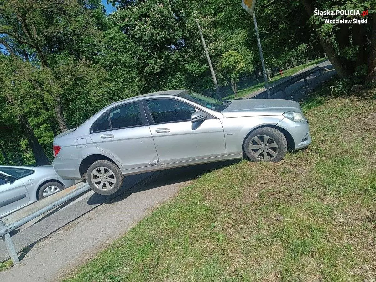 Policjanci z wodzisławskiej drogówki zatrzymali kierującego mercedesem. Mężczyzna ten stracił panowanie nad pojazdem i najechał na barierę energochłonną. 44-latkowi grozi teraz konfiskata samochodu i kara 3 lat więzienia.