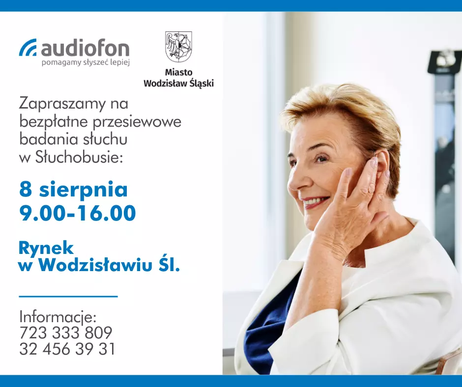 8 sierpnia br. na wodzisławskim rynku będzie można skorzystać z bezpłatnych przesiewowych badań słuchu, które przeprowadzi firma Audiofon, specjalizująca się w diagnostyce i leczeniu problemów ze słuchem. Badania będzie można zrobić w godzinach 9:00-16:00.