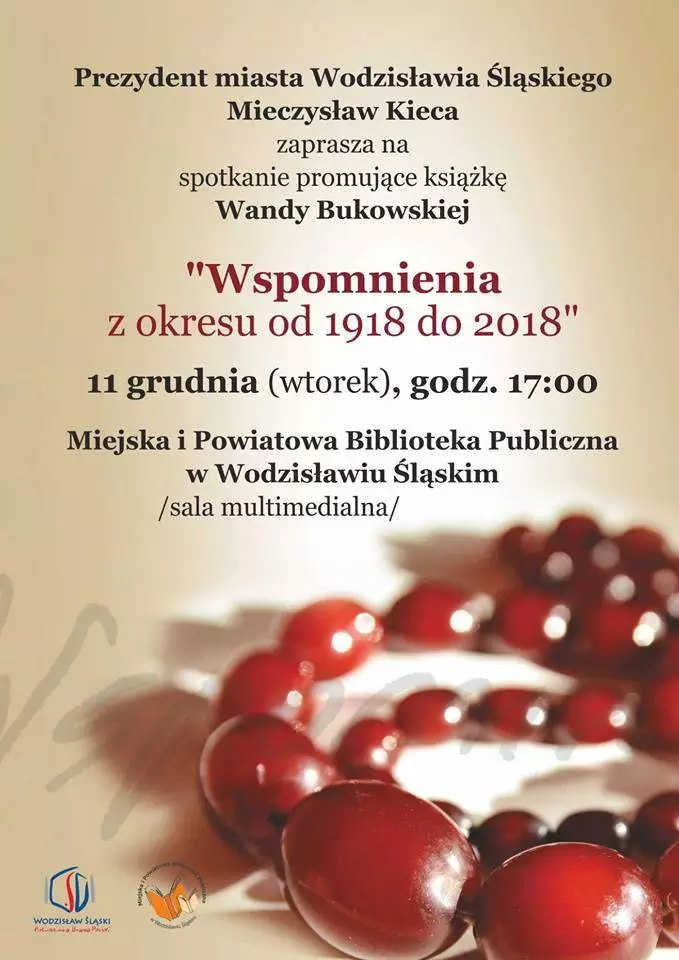 Wraz z prezydentem miasta Wodzisławia Śląskiego Mieczysławem Kiecą oraz Miejską i Powiatową Biblioteką Publiczną w Wodzisławiu Śląskim zapraszamy na spotkanie autorskie z Wandą Bukowską, założycielką Zespołu Pieśni i Tańca "Vladislavia".