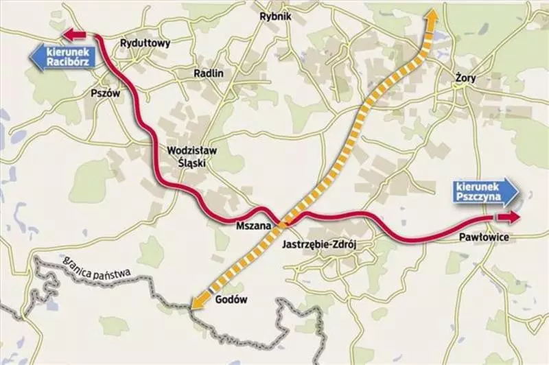 Droga Główna Południowa zgodnie z zamierzeniami ma połączyć Wodzisław Śląski, Pszów, Rydułtowy, Godów, Jastrzębie-Zdrój, Pawłowice ze zjazdem autostrady A1 w Mszanie. Droga ma być szansą na płynny ruch samochodowy. Wielu upatruje w niech także możliwość rozwoju gospodarczego. Projektowany odcinek liczy 23,2 km.