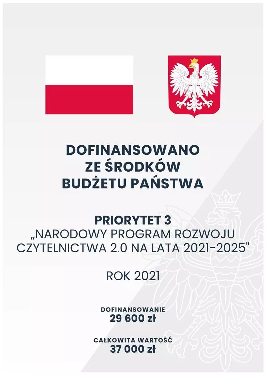 Kolejne dofinansowanie dla miasta w ramach "Narodowego Programu Rozwoju Czytelnictwa 2.0 na lata 2021-2025".