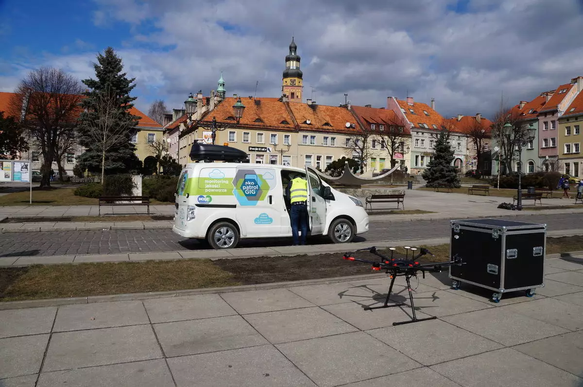 Dzięki mobilnemu laboratorium przedstawiciele Głównego Instytutu Górnictwa dokonali na rynku pomiaru zapylenia (PM1, PM2,5, PM10), formaldehydu oraz HCl. Pora dnia, silny wiatr i dość wysoka temperatura złożyły się na dobrą jakość powietrza zmierzoną za pomocą zestawu badawczego zainstalowanego na dachu samochodu. – PM 10 około 20, PM 2,5 nawet mniej więc wszystko jest w normie – zapewnia Adam Hamerla z GIG. Niestety zbyt silny wiatr nie pozwolił na wypuszczenie drona. Zaraz po tym Eko-patrol pojechał skontrolować inne rejony naszego miasta. Wyniki poznamy niebawem.