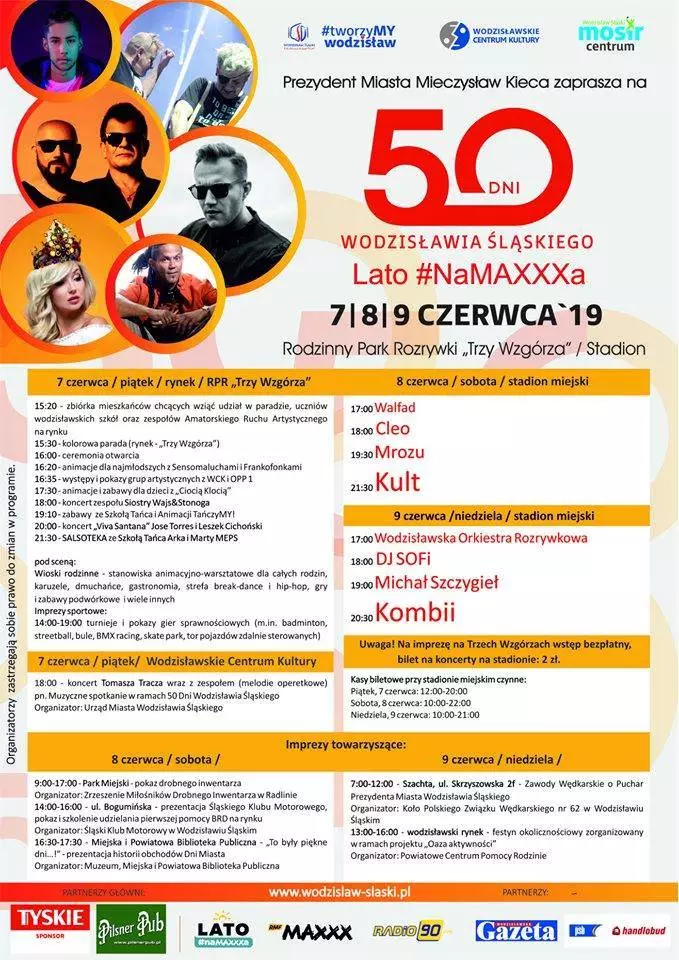 Miasto Wodzisław Śląski organizuje 50. Dni Wodzisławia Śląskiego poprzez Wodzisławskie Centrum Kultury oraz Miejski Ośrodek Sportu i Rekreacji "CENTRUM".