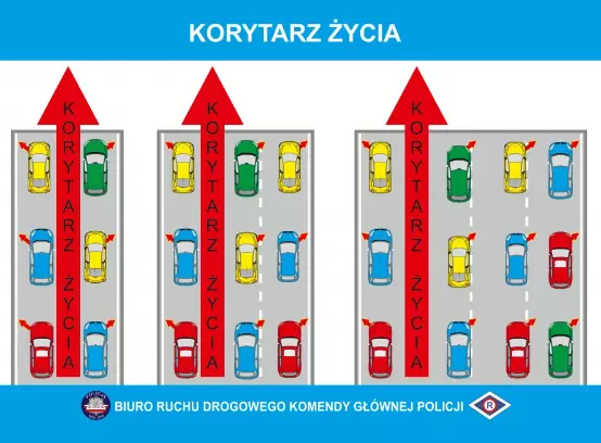 Zgodnie z obowiązującymi przepisami kierujący pojazdami, poruszający się lewym pasem muszą zjechać do lewej krawędzi pasa, a pozostali do prawej krawędzi. Sprawne utworzenie korytarza życia jest szczególnie ważne na drogach wielopasmowych, ponieważ dla służb ratowniczych liczy się każda sekunda. Im szybciej kierujący pojazdami zrobią dla nich miejsce, tym większa szansa na uratowanie życia.