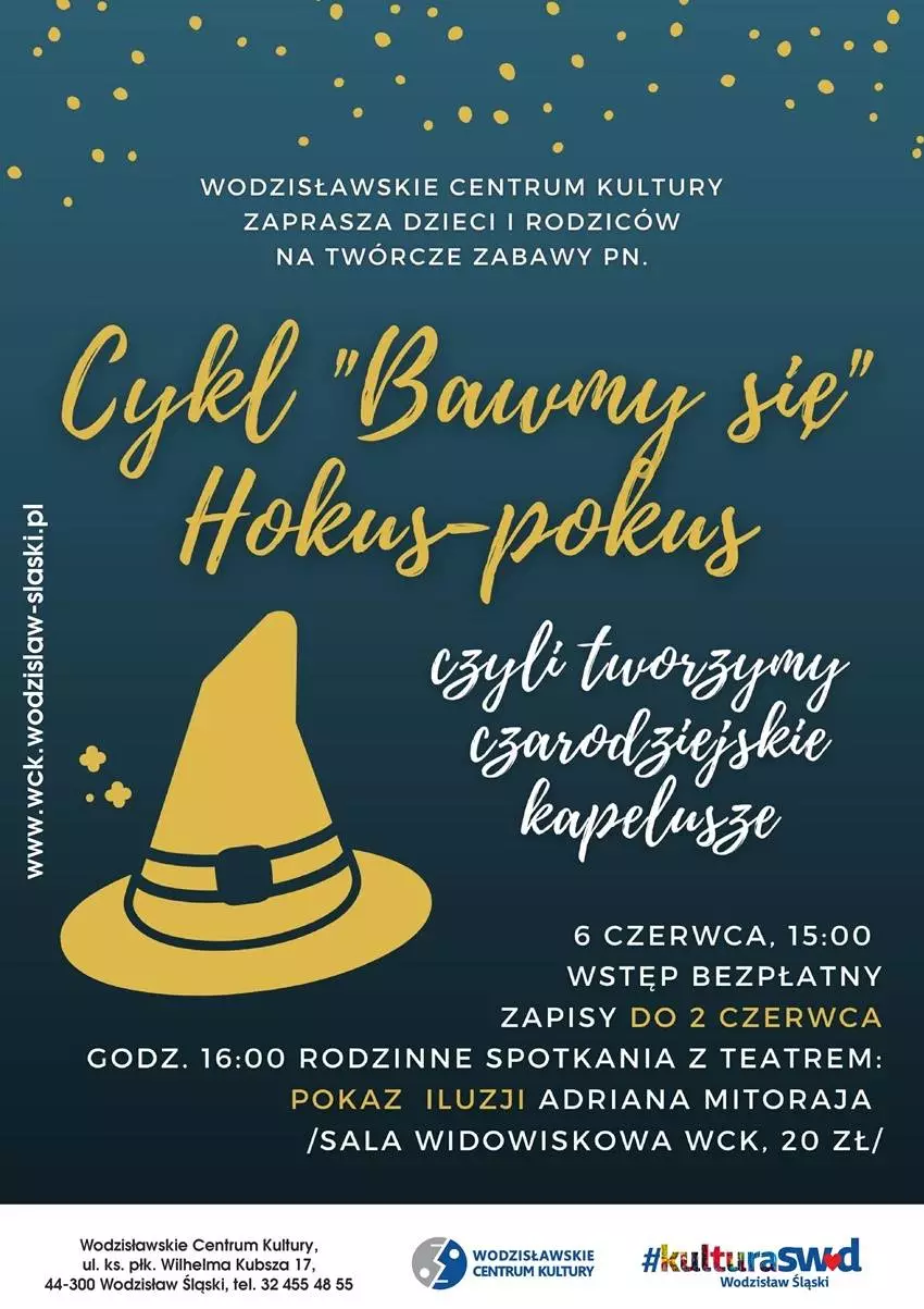 Artystyczne zajęcia to przedsmak tego, co wydarzy się na scenie widowiskowej WCK w ramach "Rodzinnych spotkań z teatrem". O godz. 16:00 będziemy mieli okazję zobaczyć wypełnione efektami iluzjonistycznymi widowisko "Poza wyobraźnią". O niezapomniane przeżycia zadba magik Adrian Mitoraj, który wraz ze swoją asystentką wprawi w zachwyt zarówno małych, jak i dorosłych widzów. Bilety w cenie 20 zł dostępne są w kasie WCK oraz na stronie www.wck.wodzislaw-slaski.pl/kup-bilet.