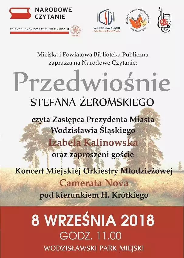 Swoje uczestnictwo w niej mogą zgłaszać szkoły, biblioteki i wszystkie inne instytucje, które chciałyby zorganizować czytanie w swoich miejscowościach. Dzięki zgłoszeniu Miejskiej i Powiatowej Biblioteki Publicznej Narodowe Czytanie "Przedwiośnia" Stanisława Wyspiańskiego odbędzie się 8 września.