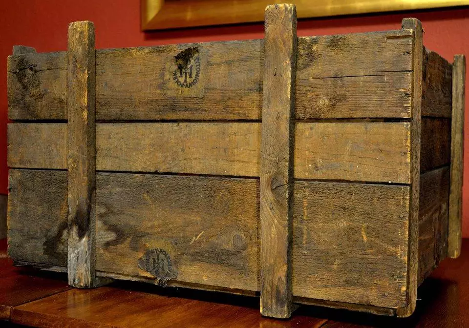 Zachowane do dziś napisy i banderole Polskiego Monopolu Tytoniowego wskazują, że obiekt ten służył do transportu tytoniu – pakowanego w wytwórni wodzisławskiej Fabryki Tytoniu znajdującej się przy obecnej ul. Wałowej. Skrzynia została wykonana z desek nieoheblowanych i nosi numer seryjny N593.