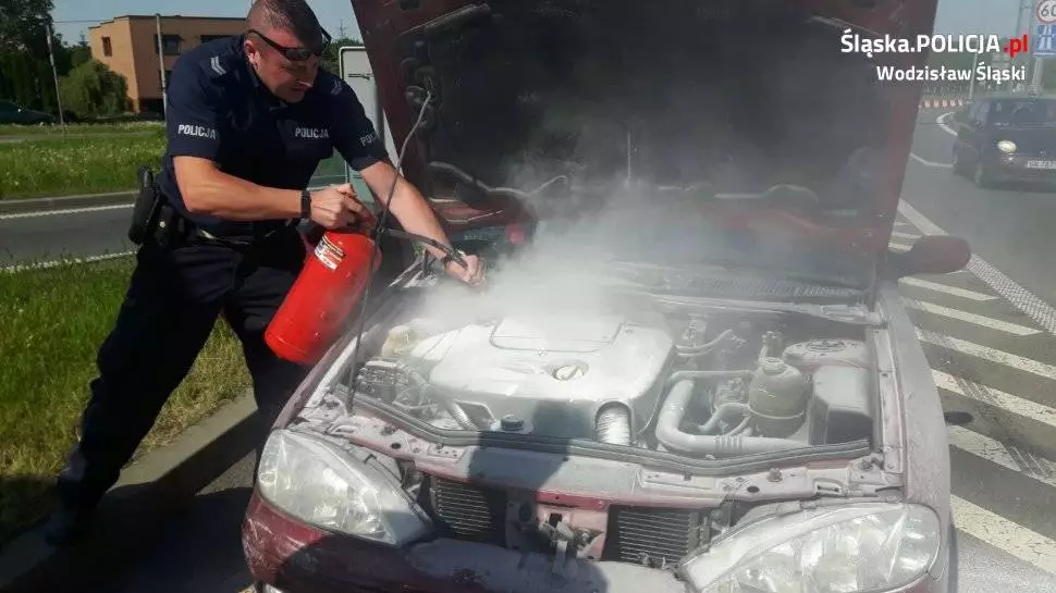 Dwaj policjanci z wodzisławskiej komendy udzielili pomocy mężczyźnie, którego samochód stanął w płomieniach. Dzięki błyskawicznej reakcji funkcjonariuszy i pomocy przejeżdżających kierowców pożar został ugaszony i nie doszło do tragedii.