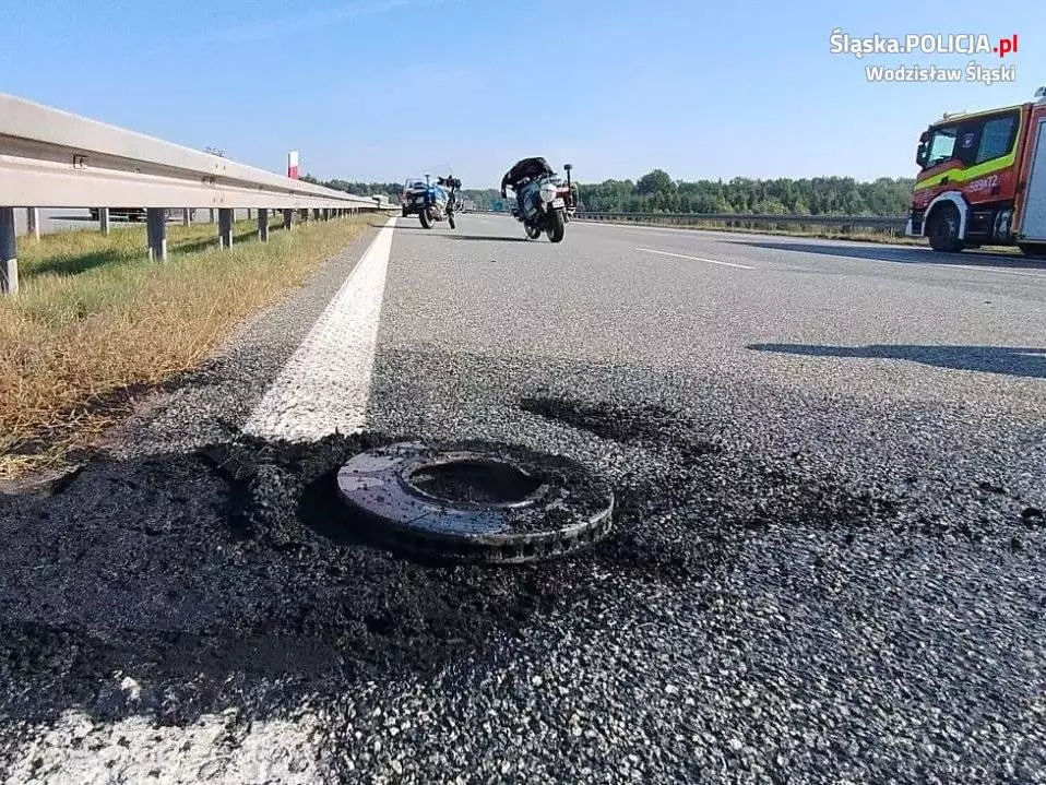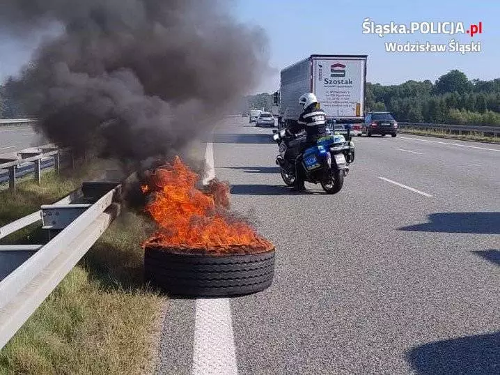 Wodzisławscy policjanci jechali na motocyklach do serwisu. Na autostradzie A1, na wysokości Bełku zauważyli pożar koła, które odpadło z naczepy ciągnika siodłowego. Stróże prawa zabezpieczyli miejsce zdarzenia i jeszcze przed przyjazdem straży pożarnej ugasili pożar.