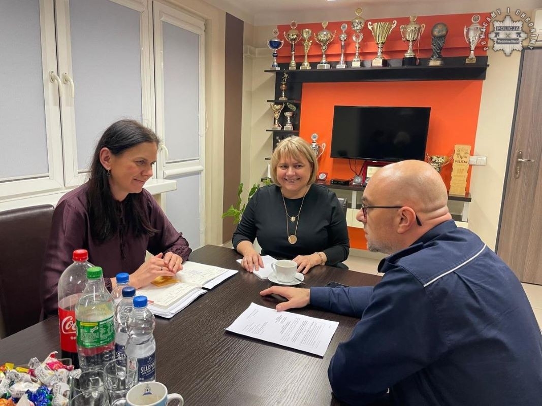 Szef wodzisławskiej Policji spotkał się z Naczelnikiem Wydziału Oświaty Starostwa Powiatowego oraz Dyrektor Zespołu Szkół Licealnych i Technicznych w Rydułtowach. Tematem spotkania była klasa o profilu policyjnym, która ma powstać w rydułtowskiej szkole.