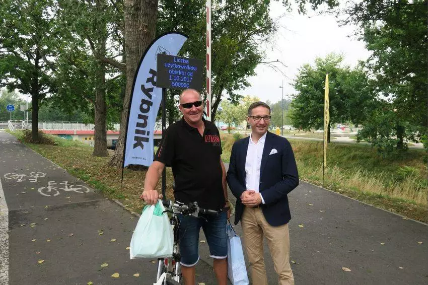 Szczęśliwy, 500-tysięczny rowerzysta to pan Krzysztof z dzielnicy Orzepowice, który jak sam przyznał jeździ tą trasą bardzo często, bo jest to szybki skrót do centrum miasta.