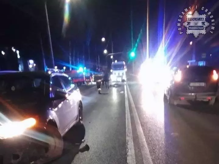 69-letni mężczyzna, który jechał na motorowerze, oczekiwał na możliwość skrętu w lewo, kiedy został uderzony przez pojazd osobowy. Siła zderzenia spowodowała, że motorowerzysta uderzył w samochód jadący z naprzeciwka. Mężczyzna odniósł poważne obrażenia nogi i został przewieziony do szpitala.