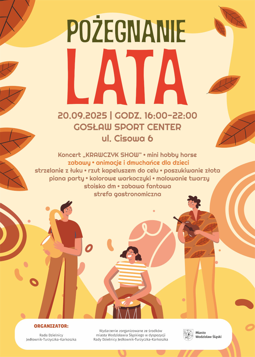 W sobotę, 20 września, w godzinach 16.00–22.00 na terenie Gosław Sport Center przy ul. Cisowej 6 w dzielnicy Jedłownik-Turzyczka-Karkoszka odbędzie się wydarzenie „Pożegnanie Lata”. To propozycja wspólnego spędzenia czasu z rodziną, sąsiadami i przyjaciółmi.