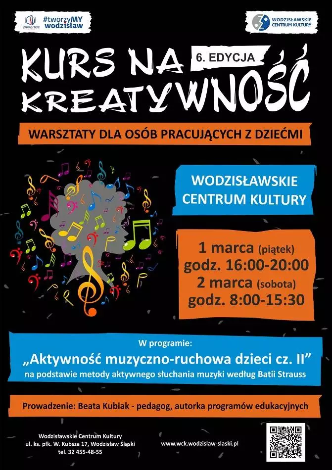 1 i 2 marca w Wodzisławskim Centrum Kultury odbędą się warsztaty pt. "Aktywność muzyczno – ruchowa dzieci cz. II", zorganizowane w ramach kolejnej edycji "Kursu na kreatywność". Szkolenie na podstawie metody aktywnego słuchania muzyki według Batii Strauss to kontynuacja zeszłorocznego cyklu, który spotkał się z zainteresowaniem uczestników.