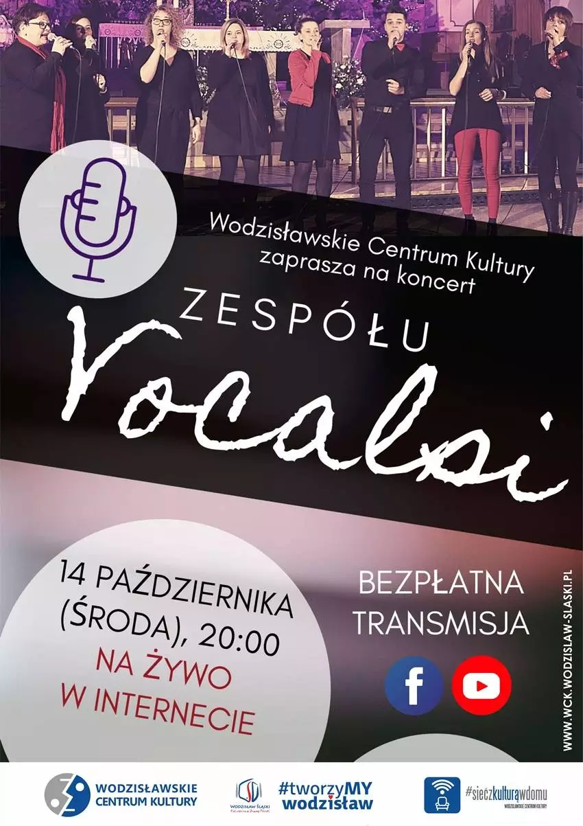 Zespół Vocalsi pojawią się na Waszych ekranach w środę, 14 października o godzinie 20:00. Będzie to kolejny koncert online zorganizowany przez Wodzisławskie Centrum Kultury.