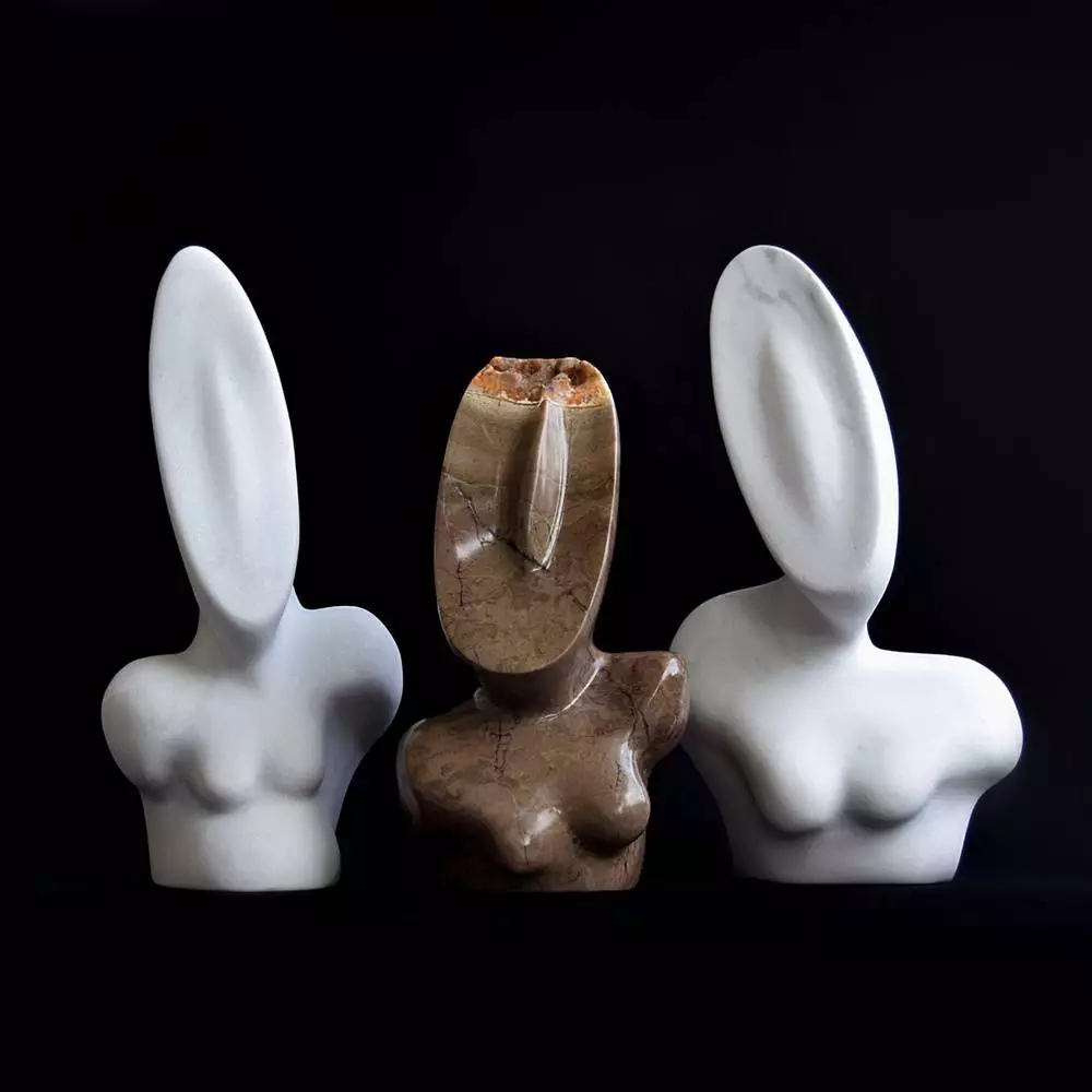 Rzeźby Julii Stachowskiej pochodziły z serii "Gracji", która tworzona była przez artystkę od 2021 roku. Prace artystki pt. Królowa, Hope oraz Lwica salonowa, wykonane zostały z marmuru carraryjskiego oraz marmuru Bolechowice. Rzeźby miały nawiązywać do popularnej w sztuce dawnej tendencji przedstawiania małych kobiecych popiersi wykonywanych zwykle z alabastru, stawianych na biurkach, czy nad kominkiem.