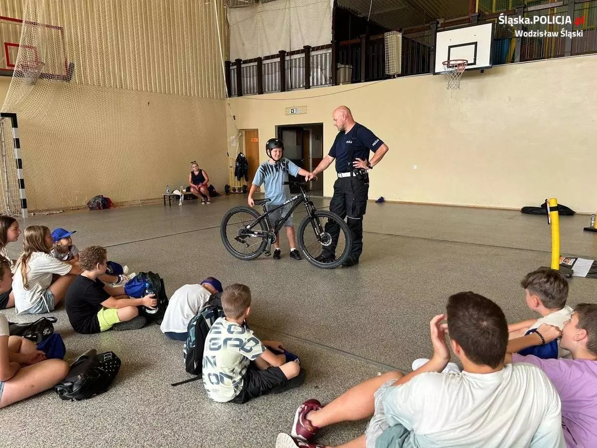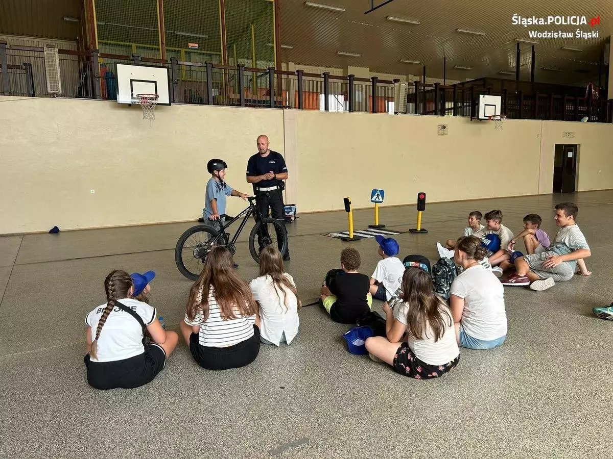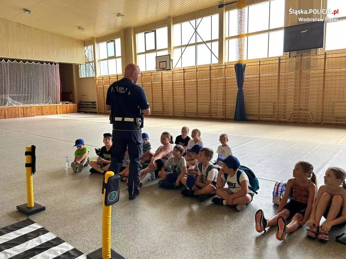 Wodzisławscy policjanci rozmawiali o zasadach bezpieczeństwa w ruchu drogowym z uczestnikami półkolonii w Marklowicach. Spotkanie było także okazją do rozmów o bezpiecznym wypoczynku nad wodą. Wakacje powinny być nie tylko przyjemne, ale przede wszystkim bezpieczne.