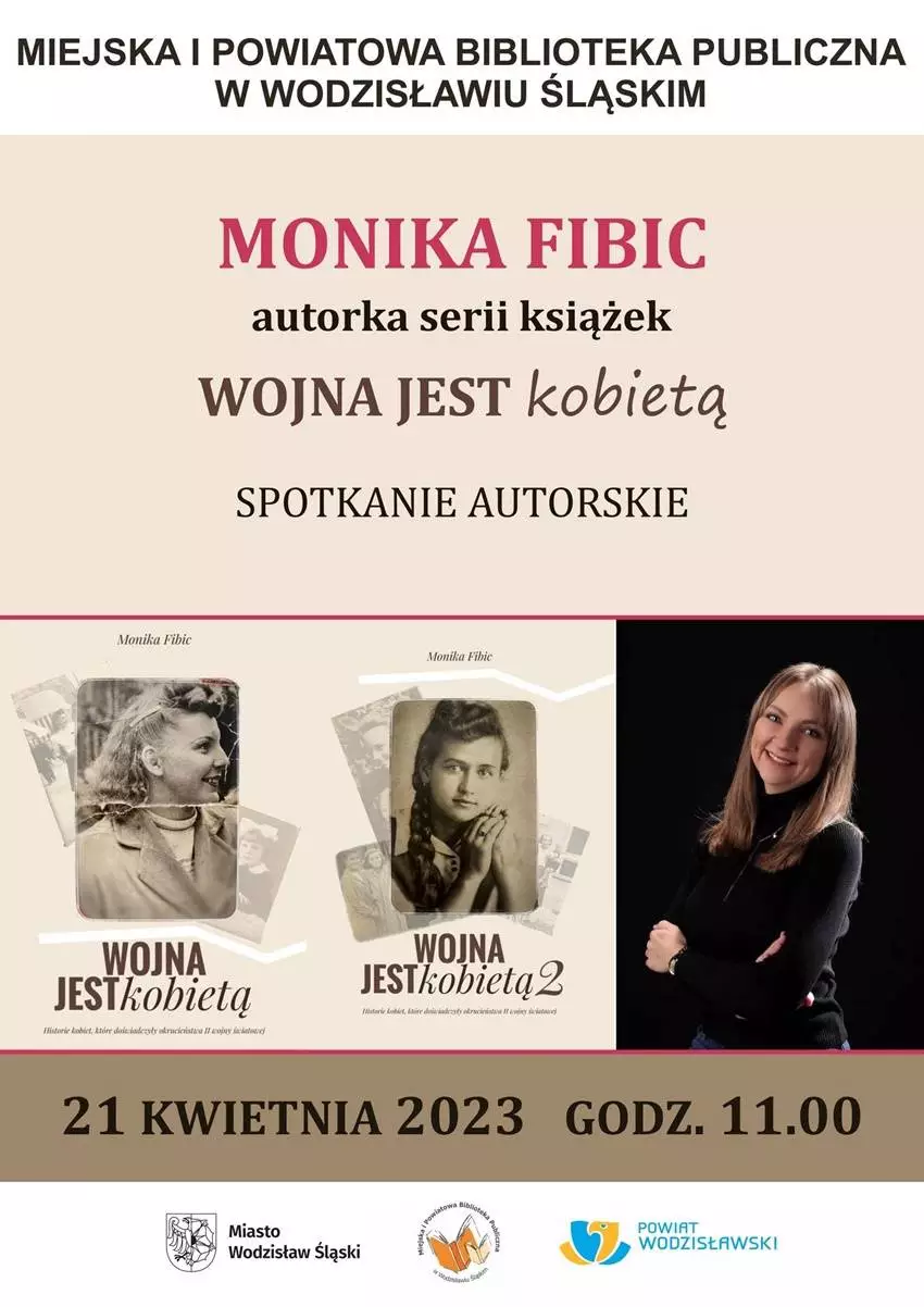 Miejska i Powiatowa Biblioteka Publiczna w Wodzisławiu Śląskim zaprasza na spotkanie autorskie z Moniką Fibic, autorką książki "Wojna jest kobietą". Wydarzenie odbędzie się 21 kwietnia br. o godzinie 11:00.