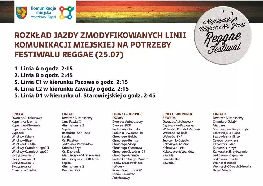 W tym roku miasto ponownie zadbało o to, by osoby bawiące się na festiwalu mogły bezpłatnie wrócić do domów zmodyfikowanymi liniami Komunikacji Miejskiej.
